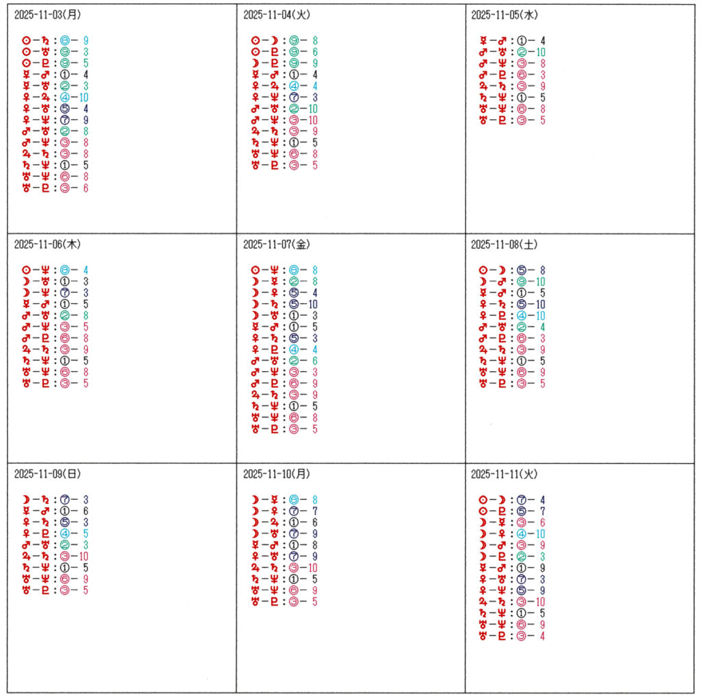 丸数字の右側は共振パワー値 ⇒ 角度の正確さ=影響力:10が最高で7まで影響力が強い
