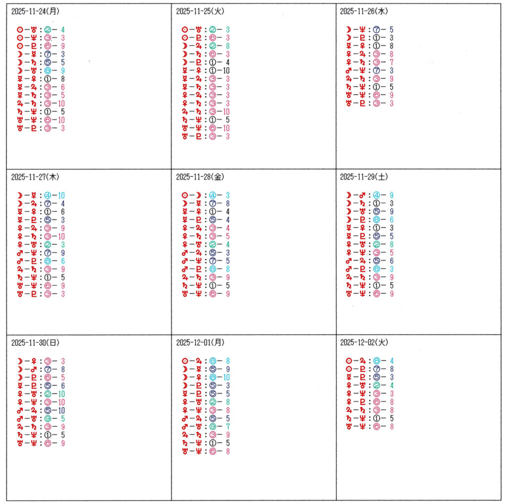 丸数字の右側は共振パワー値 ⇒ 角度の正確さ=影響力:10が最高で7まで影響力が強い