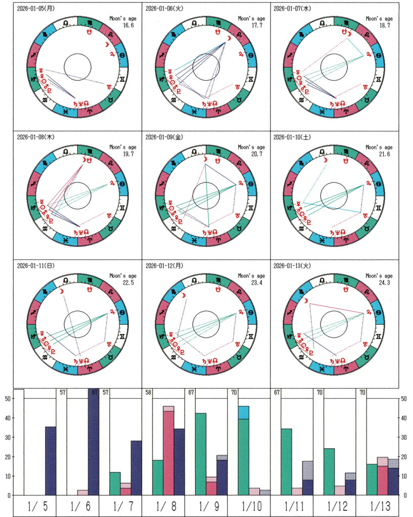 ★4本目の棒グラフが高い日⇒精神活性度(発想力、芸術性、直観力)が高まる日