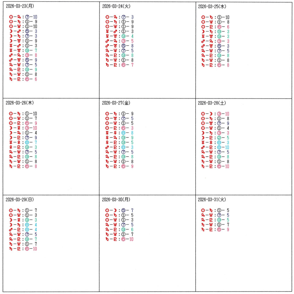 丸数字の右側は共振パワー値 ⇒ 角度の正確さ=影響力:10が最高で7まで影響力が強い