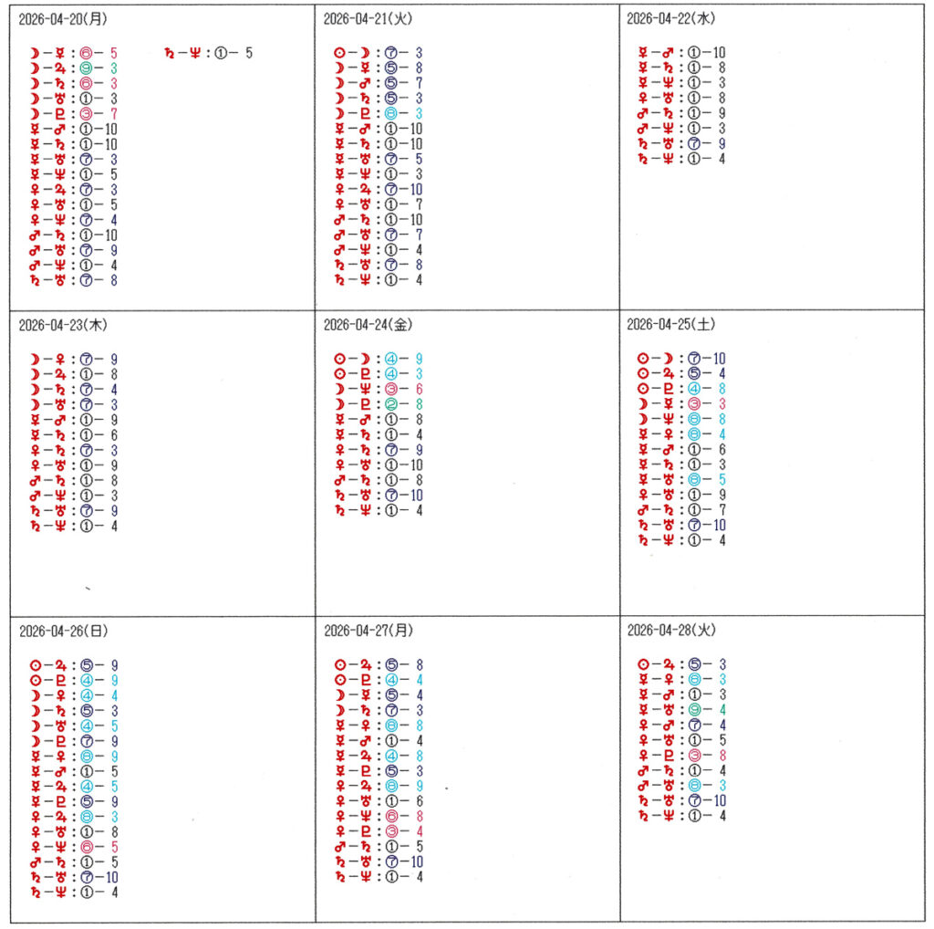 丸数字の右側は共振パワー値 ⇒ 角度の正確さ=影響力:10が最高で7まで影響力が強い