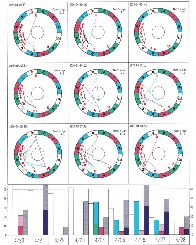 ★4本目の棒グラフが高い日⇒精神活性度(発想力、芸術性、直観力)が高まる日