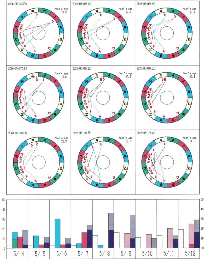 ★4本目の棒グラフが高い日⇒精神活性度(発想力、芸術性、直観力)が高まる日