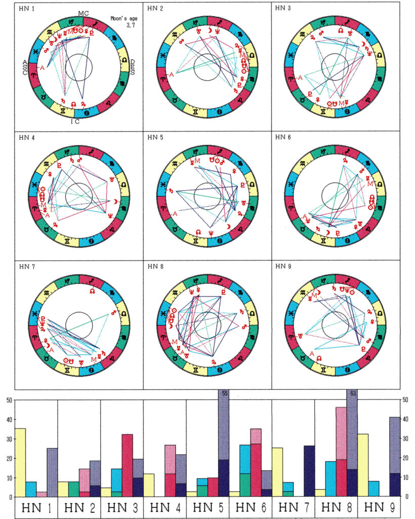 Astro Harmonic Chart β1 of Billie Eilish 2001年12月18日12:17 米国カリフォルニア州 ロサンゼルス生まれ 上記ハーモニクスチャートの第1調波(ホロスコープ)から第9調波までの診断法です